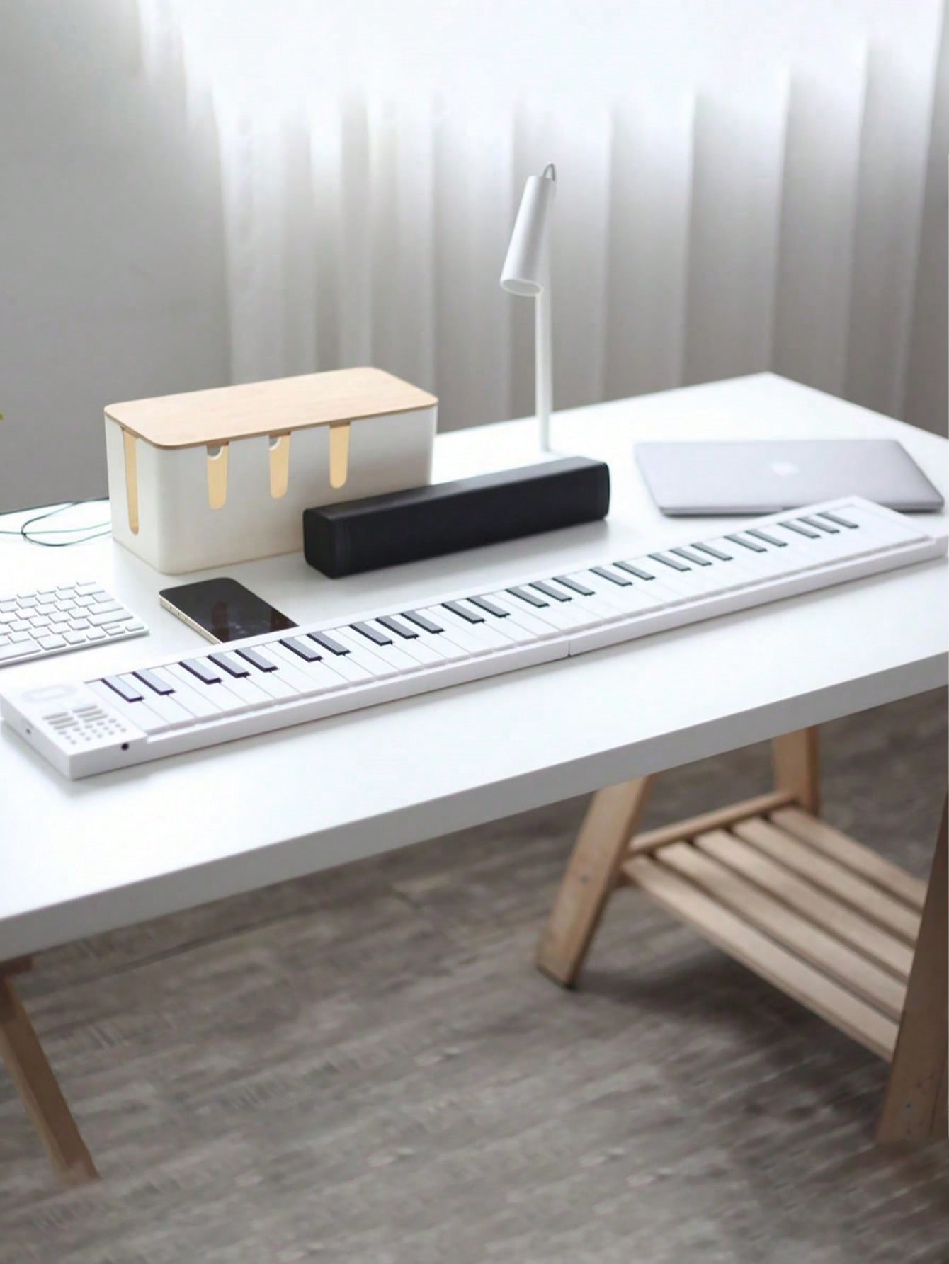 كيبورد بيانو إلكتروني قابل للطي بتصميم مبتكر يجمع بين الراحة والعملية، مما يجعله الخيار المثالي للتدريب والسفر. يتميز بخفة وزنه وسهولة تخزينه وحمله في أي مكان، مع أداء موسيقي مميز يناسب الهواة والمحترفين. يحتوي الجهاز على 16 نغمة موسيقية متنوعة و 100 إيقاع مختلف تمنحك تنوعًا واسعًا في العزف والتجربة، إضافة إلى 25 أغنية تجريبية للتدريب تساعدك على تطوير مهاراتك خطوة بخطوة. كما أنه مزود بميزة الشحن عبر USB لسهولة الاستخدام دون الحاجة إلى البطاريات المستمرة. أداة عملية وعصرية تجعل تجربة العزف أكثر متعة واحترافية. متوفر الآن في متجر مقام الصبا مع خدمة شحن سريع لجميع المناطق.